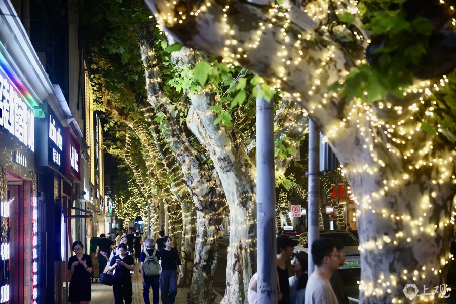 如繁星点点的灯光闪动在梧桐树上,沿街两侧建筑立面在光影波动中更加迷人。今晚(26日),淮海中路树灯景观亮起,沿线两侧行道树景观有了新的模样。璀璨的树灯景观,让淮海中路的“光影长廊”夜景重归,也点亮了淮海路的夜经济。